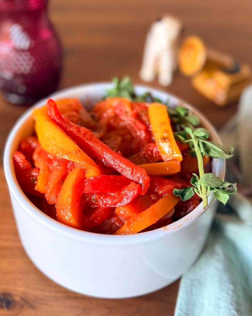 Peperonata tastes even better the next day as the flavors marry together. You want to store it in an airtight container in the refrigerator for up to three days. I find it is best on day two when the flavors begin to meld. However, starting on day three, the vegetables begin to break down further, and the sauce may become watery.
